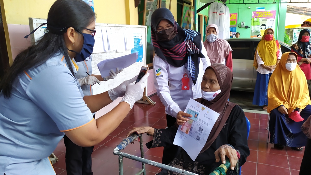 Untuk menuju balai kelurahan, nenek Manisem harus menggunakan alat bantu. Ia diantar oleh ketua RT agar mudah mengurus administrasi pencairan. Beruntung petugas Kantor Pos yang mendatangi nenek Manisem di teras balai kelurahan saat akan mengambil foto penerimaan bansos sebagaimana persyaratan dari Kemensos.