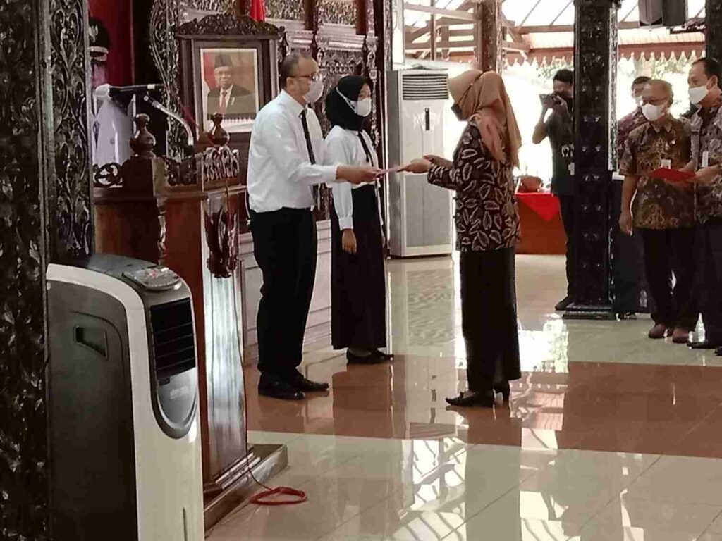 PURBALINGGA, INFO- Calon Pegawai Negeri Sipil (CPNS) yang baru menerima Surat Keputusan (SK) diharapkan untuk untuk langsung menyajikan kinerja terbaiknya. Hal tersebut disampaikan Sekda Purbalingga Herni Sulasti yang mewakili Bupati Purbalingga dalam acara penyerahan SK kepada 222 CPNS hasil seleksi tahun anggaran 2021, Jum’at (29/4/2021) di Pendapa Dipokusumo Purbalingga.