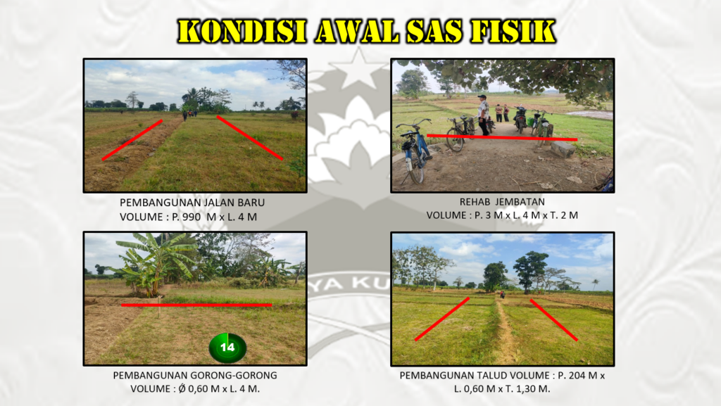 “Sasaran pokok berupa pembangunan jalan baru ini dengan volume panjang 992 meter, lebar 4 meter dengan pekerjaan urugan sirtu jalan panjang 992 meter, lebar 3 meter,” jelasnya.