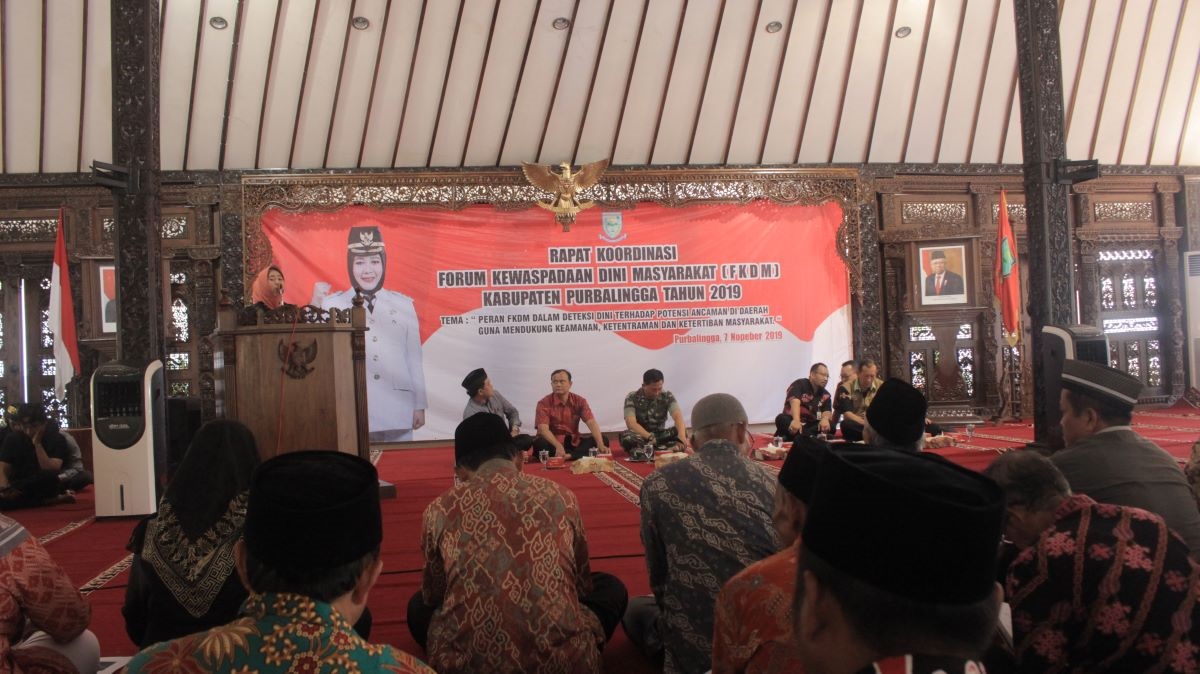 Rakor FKDM yang dipandu budayawan Agus Sukoco, juga disampaikan pemaparan oleh Dandim 0702 Purbalingga yang diwakili Pasi Intel Kodim 0702 Purbalingga Kapten ARM Khasan dan Kepala Pelaksana Badan Penanggulangan Bencana Daerah (BPBD) Muhammad Umar Fauzi.