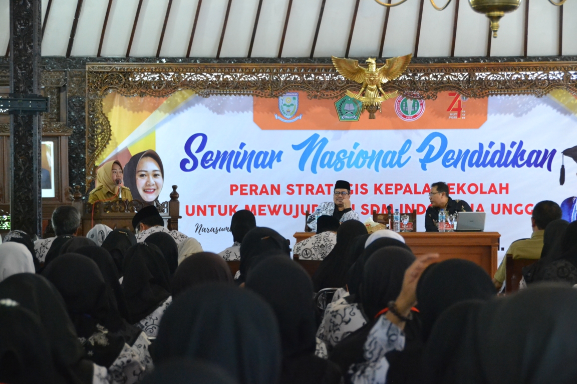 “Kepala sekolah harus memiliki ide-ide, gagasan dan kreativitas agar sekolah dipimpin bisa menjadi sekolah unggulan. Untuk berfikir kreatif kadang kita harus pikir out of the box, membuat suatu inovasi baru yang tidak terpikirkan orang sebelumnya,” katanya saat memberikan sambutan pembukaan Seminar Nasional Pendidikan, Selasa (19/11) di Pendopo Dipokusumo.
