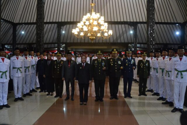 PURBALINGGA – Sebanyak 30 pelajar SMA/SMK/MA di Purbalingga dikukuhkan menjadi Pasukan Pengibar Bendera Pusaka (Paskibraka), di Pendopo Dipokusumo Purbalingga, Senin (15/8). Mereka akan bertugas melakukan pengibaran dan penurunan bendera pada upacara peringatan Hari Ulang Tahun (HUT) Ke-77 Kemerdekaan Republik Indonesia pada Rabu (17/8) di Alun-alun Purbalingga.