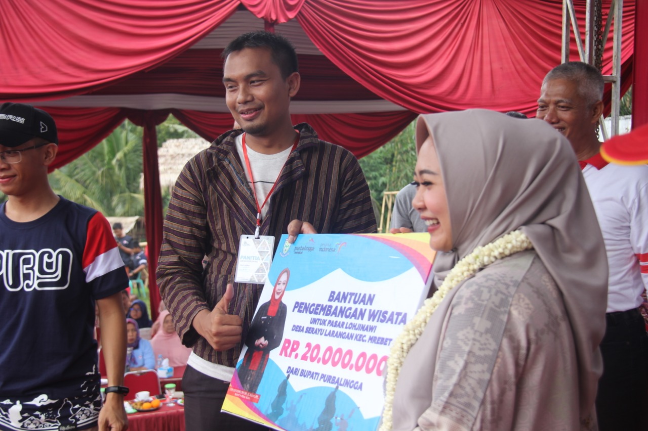 “Desa Serayularangan termasuk desa yang inovatif dengan mendirikan Pasar Lohjinawi, tujuannya saya yakin meningkatkan ekonomi kerakyatan, ada 25 pedagang di dalamnya. Alhamdulillah omset dari minggu ke minggu selalu bertambah, semakin banyak, sehingga pasar ini tidak hanya penggerak ekonomi tapi juga potensi pariwisata,” ungkap Bupati Tiwi.