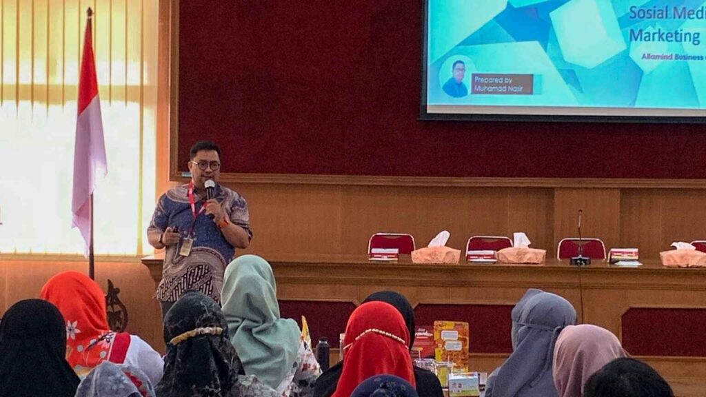 Selanjutnya, pelaku usaha UMKM juga dibekali ilmu seputar Social Media Marketing yang dipaparkan oleh Muhammad Nasir dari AlfaMind.