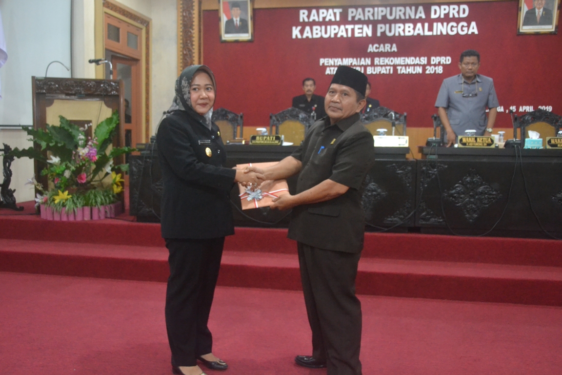 PURBALINGGA – DPRD Purbalingga memberikan sejumlah rekomendasi atas Laporan Keterangan Pertanggungjawaban (LKPJ) Bupati Purbalingga tahun 2018, Senin (15/4) di Ruang Rapat DPRD. Rekomendasi tersebut merupakan hasil pembahasan Panitia Khusus (Pansus) dan hasil rapat-rapat dan pemantauan lapangan alat kelengkapan DPRD selama tahun 2018,serta Dokumen Perencanaan yang telah disusun.