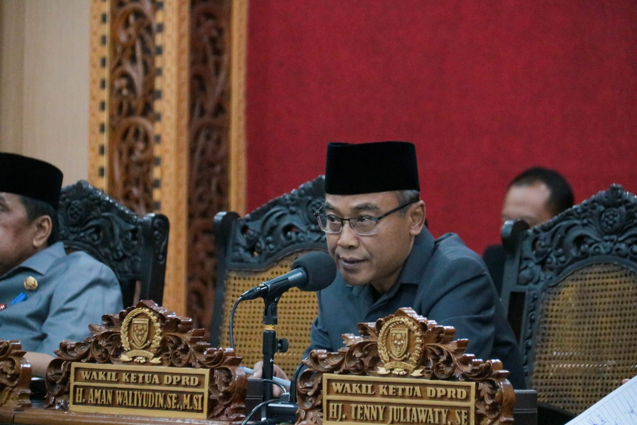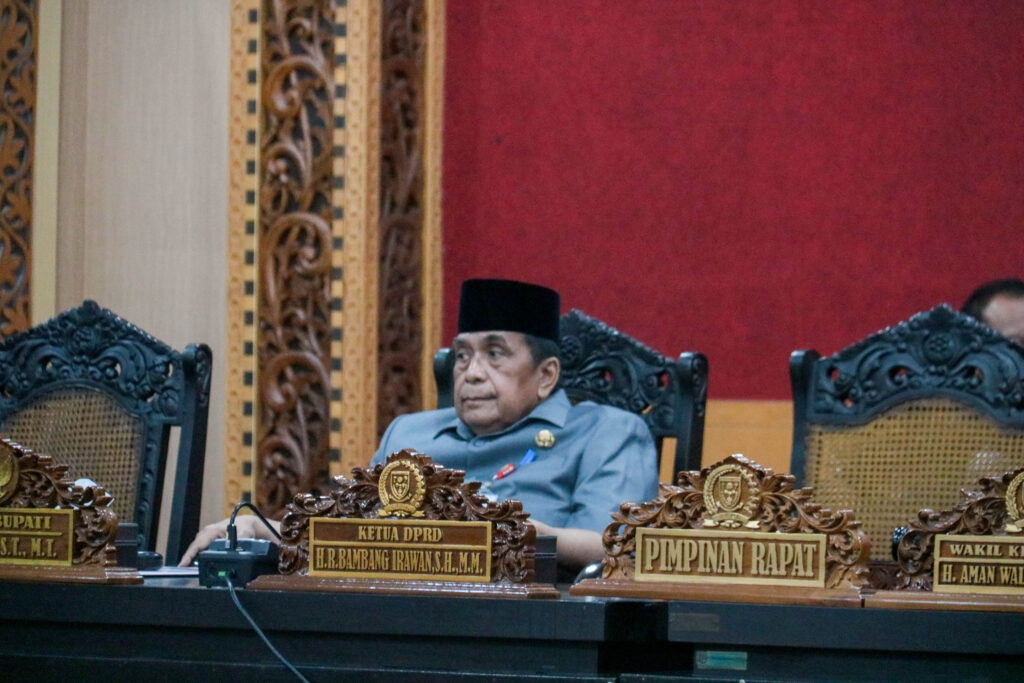 Dalam kesempatan tersebut, Bupati menyampaikan jawaban terhadap pandangan umum fraksi-fraksi DPRD terhadap Rancangan Peraturan Daerah (Raperda) tentang pengembangan ekonomi kreatif beserta 3 raperda lainnya.