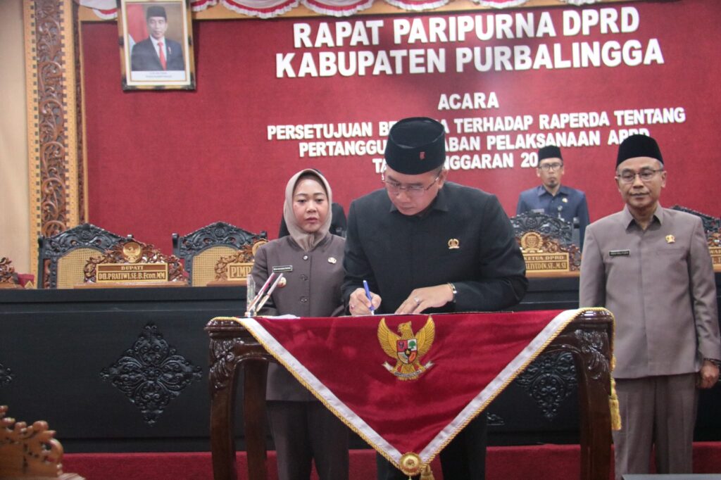 Dengan telah disetujuinya Raperda tentang Pertanggungjawaban Pelaksanaan APBD Tahun anggaran 2023, selanjutnya persetujuan tersebut akan dituangkan dalam keputusan DPRD yang akan ditandatangani oleh Ketua DPRD Kabupaten Purbalingga