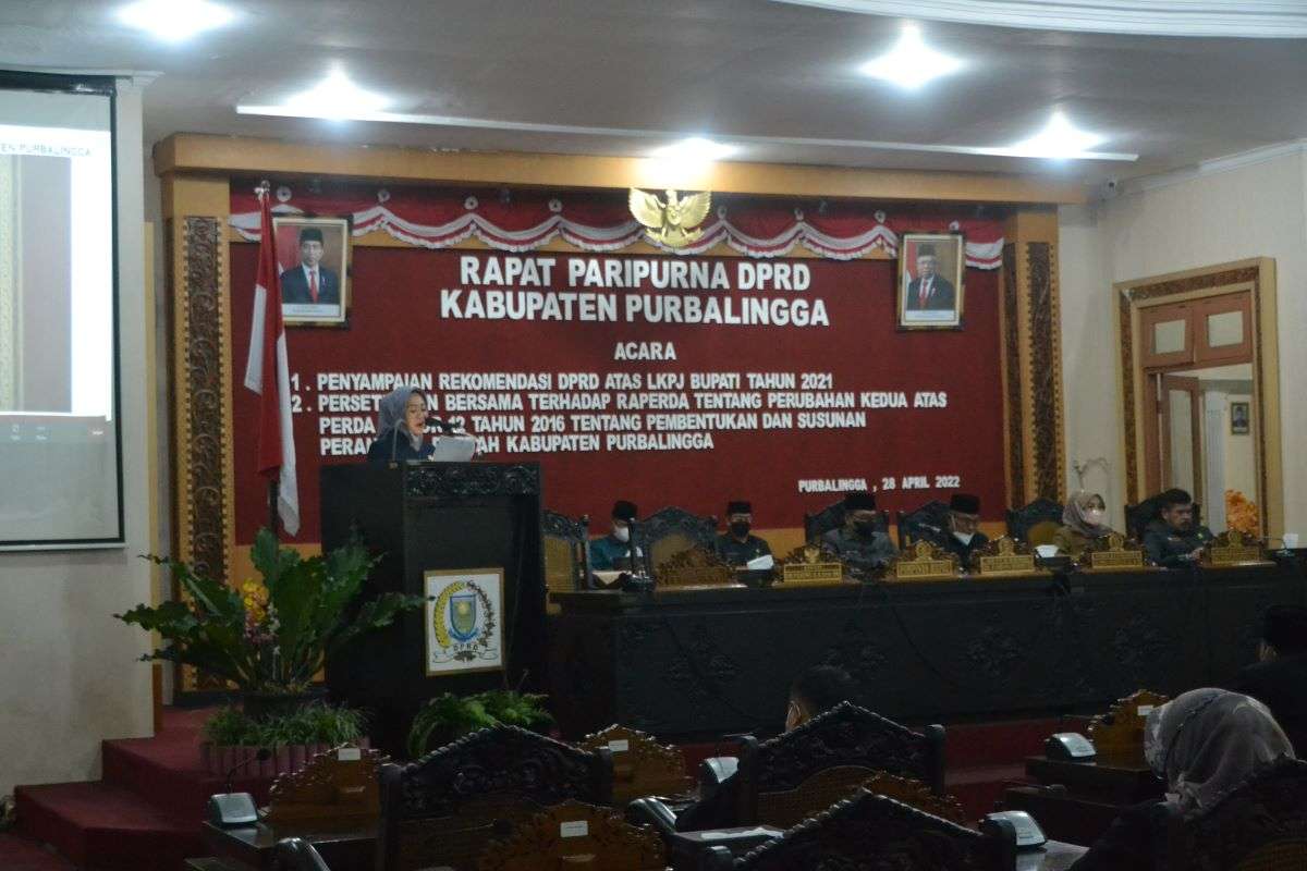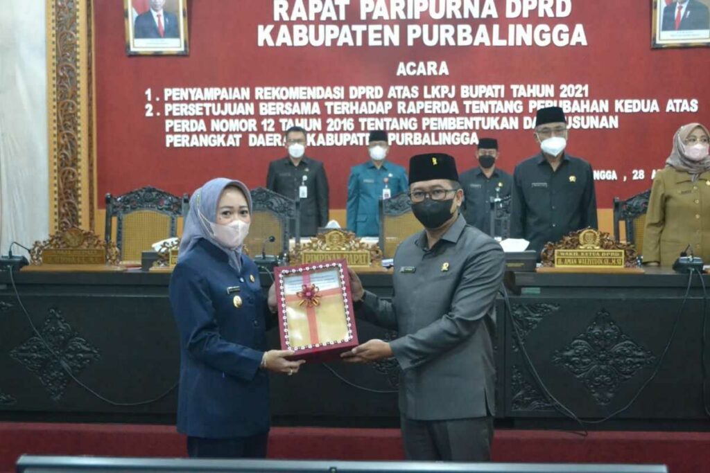 PURBALINGGA – DPRD Kabupaten Purbalingga memberikan 10 rekomendasi Terhadap Laporan Keterangan Pertanggungjawaban Bupati Purbalingga Tahun Anggaran 2021, Kamis (28/4) di Ruang Rapat DPRD. Pemberian rekomendasi ini merupakan kewajiban sesuai yang diamanatkan Peraturan Pemerintah Nomor 13 Tahun 2019 dalam rangka perbaikan penyelenggaraan pemerintahan daerah.