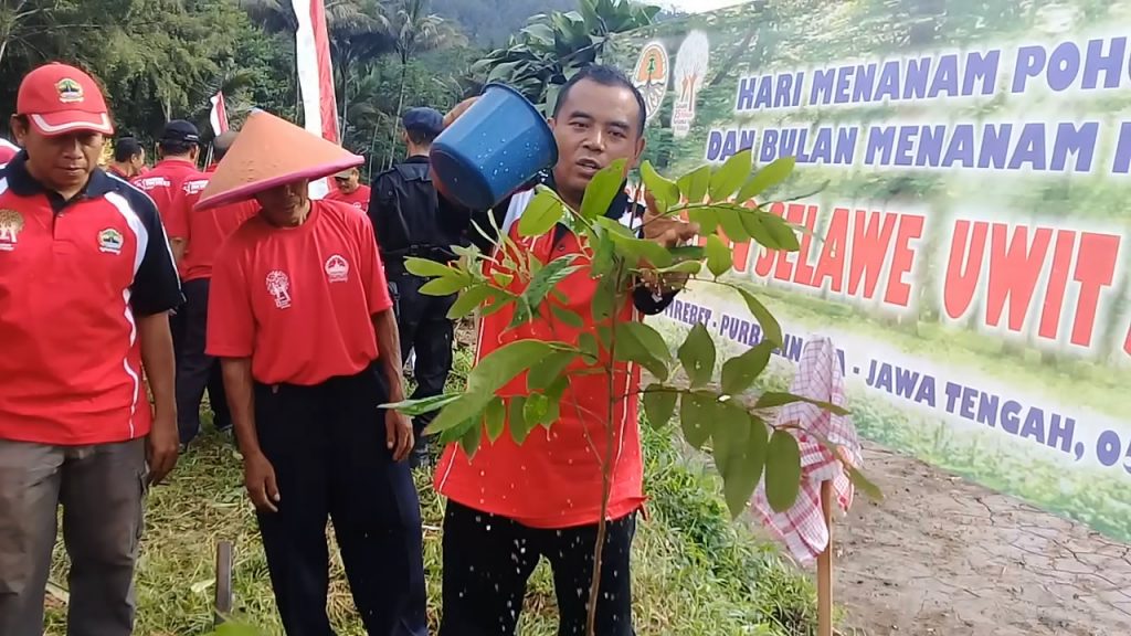 “Di kabupaten Purbalingga ditanam 272.700 batang pohon. Sedangkan yang ditanam di desa kami (Sangkanayu-red) 38.700 batang terdiri dari bibit Albasia 32.000 batang dari industri kayu dan 6.700 batang bibit produktif dari Dinas Lingkungan Hidup dan Kehutanan Provinsi Jawa Tengah. Jenisnya durian, klengkeng dan nangka,” ujar Ali Nursetiawan di sela-sela acara yang dipusatkan di lapangan desa setempat, Selasa (5/12).