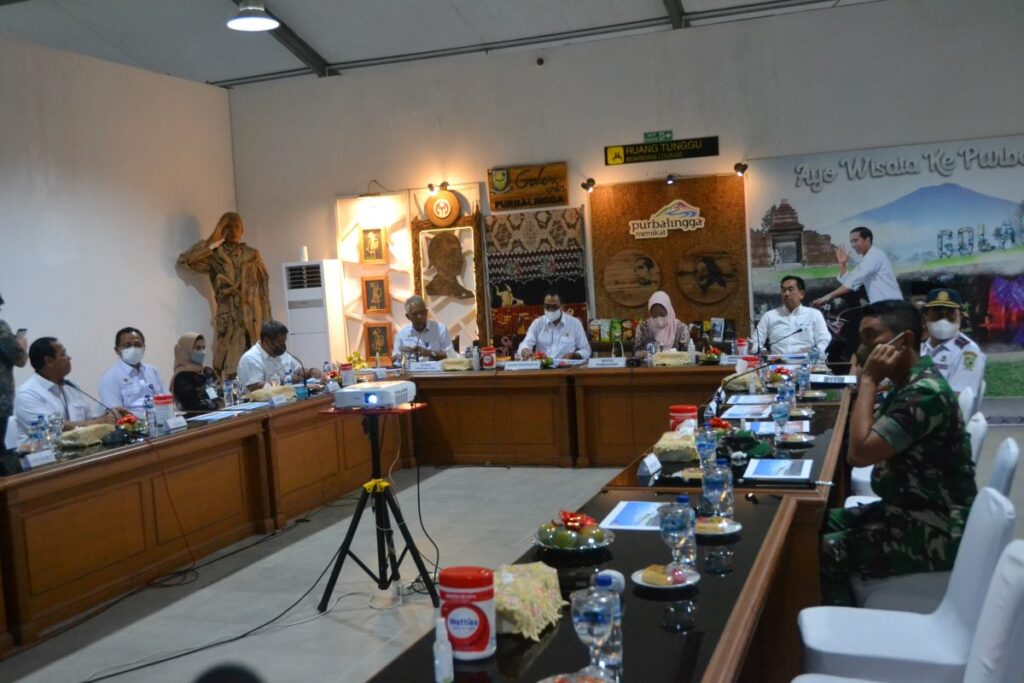 PURBALINGGA – Menteri Perhubungan RI Dr Ir Budi Karya Sumadi didampingi Plt Dirjen Perhubungan Udara mengadakan pertemuan dengan Dirut Angkasa Pura II, Dirut Maskapai Penerbangan Citilink dan Wings Air, Danlanud JB Soedirman serta kepala daerah/perwakilan 6 kabupaten yakni Purbalingga, Banyumas, Pemalang, Banjarnegara, Kebumen dan Wonosobo, Jum’at (30/9) di Terminal Bandara JB Soedirman. Pertemuan ini guna rapat koordinasi merumuskan langkah bersama untuk menjaga eksistensi operasionalisasi Bandara JB Soedirman.