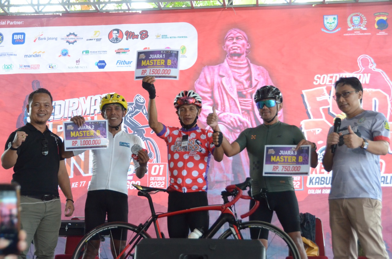 Demikian disampaikan ketua ISSI Purbalingga R Budi Setyawan usai penyerahan hadiah kepada para pemenang di sejumlah kategori Soedirman Gran Fondo 2022, di pelataran parkir kompleks Owabong Cottage, Purbalingga, Sabtu (1/10/2022). “Even yang baru pertama kali diadakan ini lumayan menantang. Terbukti sejumlah pembalap nasional dan luar daerah ikut ambil bagian,” katanya.