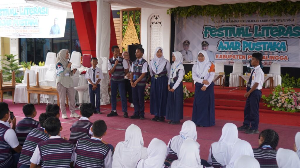 PURBALINGGA INFO – Festival Literasi Ajar Pustaka Kabupaten Purbalingga memasuki hari kedua, Selasa (16/9/25), dengan berbagai rangkaian kegiatan edukatif dan interaktif yang menyasar anak-anak hingga remaja. Kegiatan berlangsung di Perpustakaan Umum Daerah Kabupaten Purbalingga.