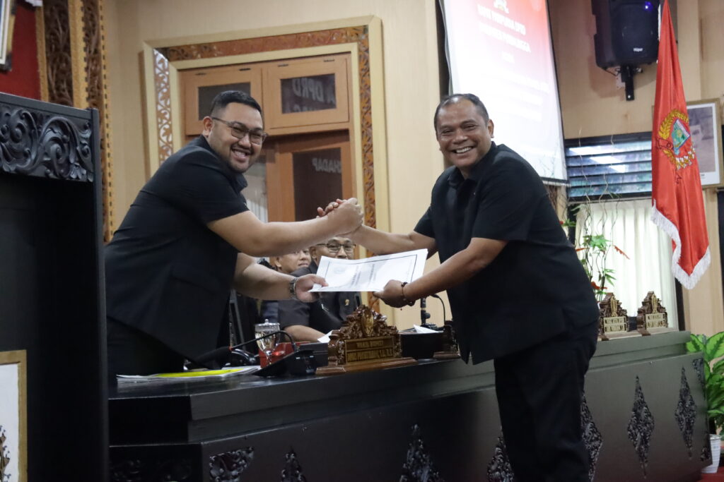 Dokumen tanggapan fraksi DPRD diserahkan secara bergiliran oleh perwakilan fraksi kepada Wakil Bupati Purbalingga, sebagai bentuk tindak lanjut atas pendapat yang telah disampaikan Bupati sebelumnya.