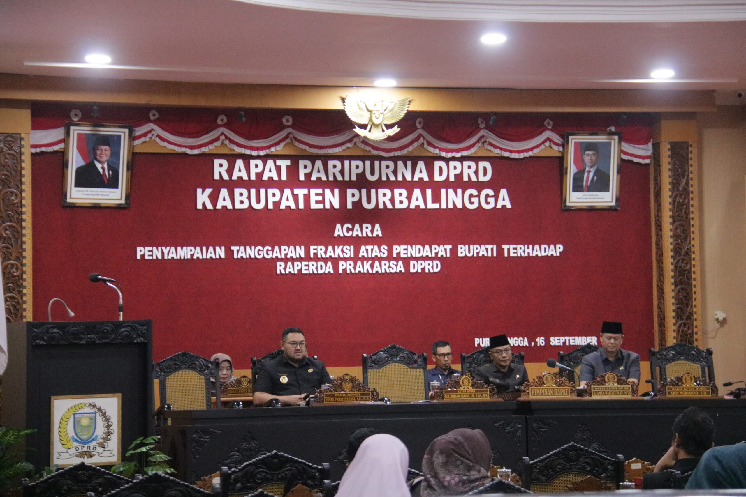 PURBALINGGA – DPRD Kabupaten Purbalingga menggelar Rapat Paripurna Penyampaian Tanggapan Fraksi atas Pendapat Bupati terhadap Raperda Prakarsa DPRD, Selasa (16/9/2025), di Ruang Rapat DPRD Kabupaten Purbalingga.