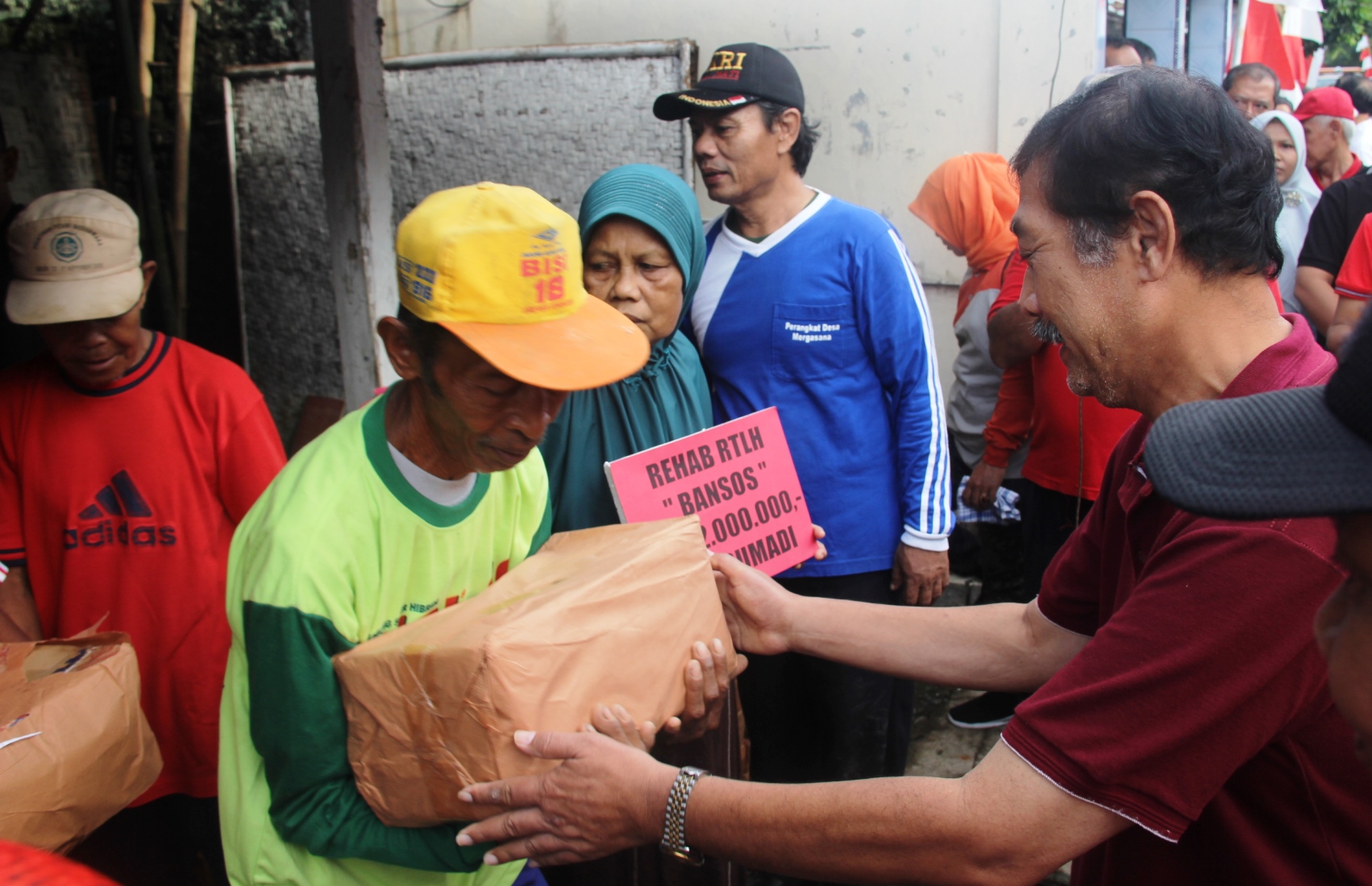 Bantuan rehab untuk tiga warga Mergasana tersebut diserahkan Plt. Bupati saat beramah tamah dengan warga di halaman balaidesa Mergasana. Selain bantuan rehab, Plt. Bupati juga menyampaikan bantuan alsintan (alat mesin pertanian) berupa power tracher, mesin perontok padi, sprayer, tugal dan juga bibit tanaman serta bantuan PMT ibu hamil dan balita, 103 paket rasbangga serta bantuan bola dan kostum olahraga bagi klub sepakbola desa Mergasana. (t/ humpro2018).