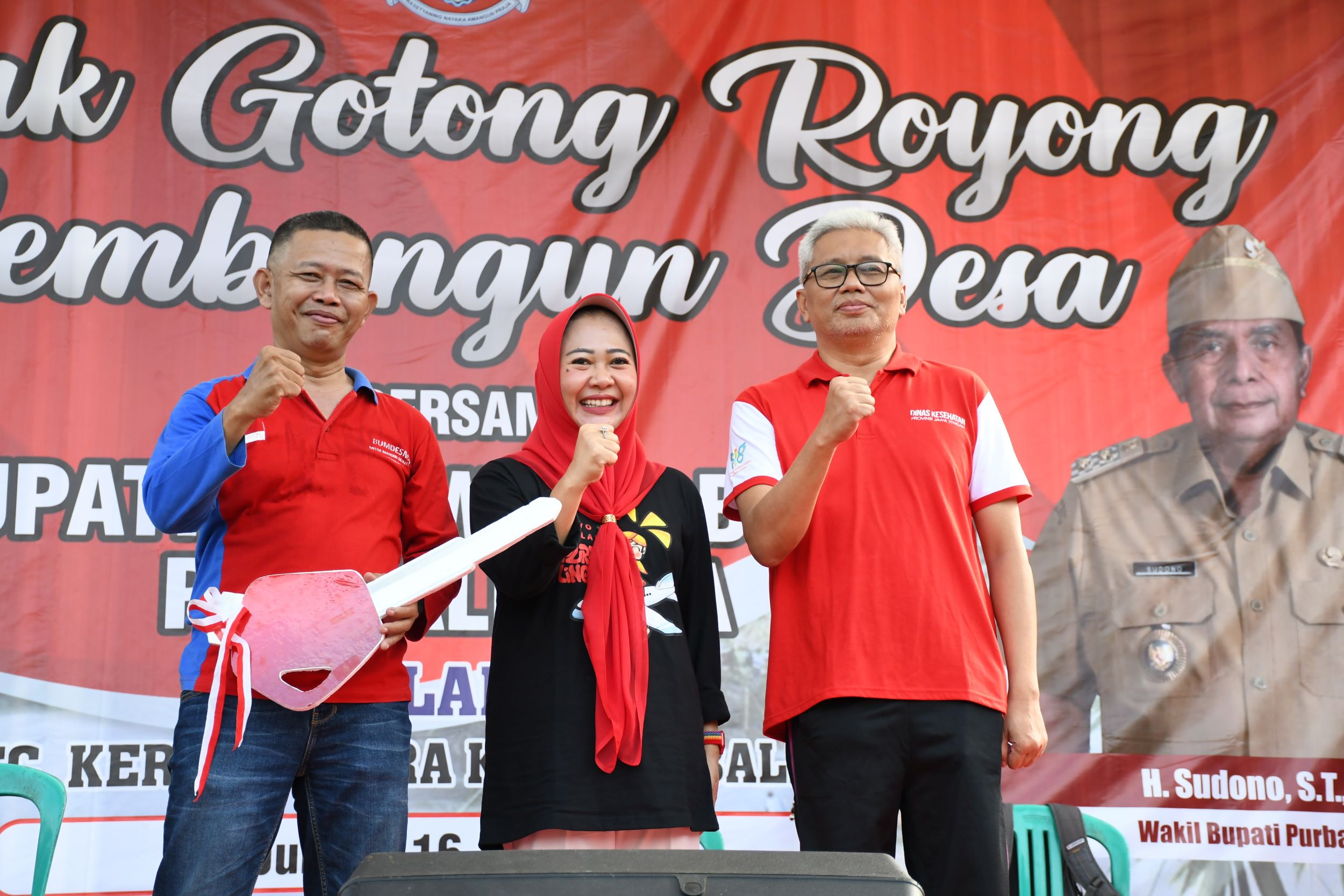 “Hari ini, Bu Tiwi menyerahkan hadiah 1 unit mobil siaga. Ini sebagai bentuk penghargaan dari Bupati dan Wakil Bupati karena Desa Langkap prestasinya luar biasa. Desa Langkap ini Desa yang mempioniri ODF (bebas dari kebiasaan buang air besar sembarangan) dan imunisasi anaknya juga tertinggi,” kata Bupati Tiwi dalam acara Gerakan Bersama Masyarakat (Gebrak) Gotong Royong, Jum’at (16/6/2023) di Desa Langkap Kecamatan Kertanegara.