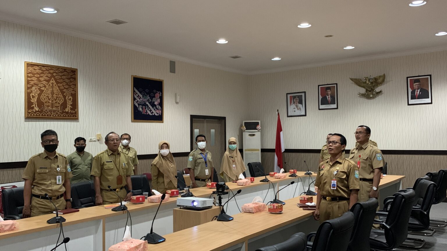 PURBALINGGA INFO – Jajaran OPD terkait di lingkungan pemerintah Kabupaten Purbalingga mengikuti Penyerahan Rekor MURI Gerakan Pembagian 10 Juta Bendera Merah Putih kepada Mendagri dan Penghargaan Mendagri kepada Kepala Daerah secara daring (online) pada Senin (5/9/2022), bertempat di Ruang Rapat Bupati, kantor setda Purbalingga.