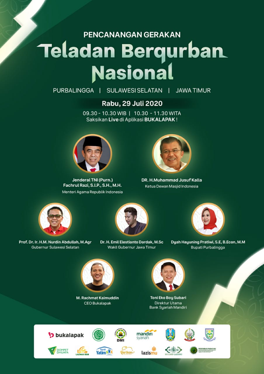 Menurut Mukodam, kegiatan tersebut dilakukan dalam rangka menyambut Hari Raya Idul Adha 1441 Hijriah yang dilaksanakan oleh Dewan Masjid Indonesia (DMI), PT. Bukalapak dan Bank Syariah Mandiri. Bupati Purbalingga Dyah Hayuning Pratiwi akan live video conference dengan Menteri Agama, mantan Wapres Jusuf Kalla selaku Ketua DMI, Gubernur Jawa Timur, Gubernur Sulawesi Selatan.