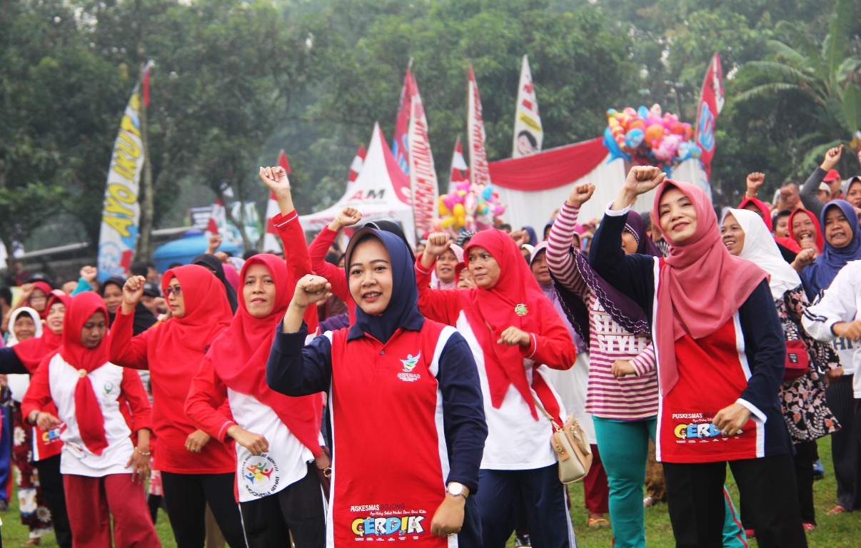 Kegiatan Germas Puskesmas Bojong diawali dengan senam bersama warga, penyerahan bantuan paket beras dan lele, bantuan alat kesehatan, alat pertanian serta bibit tanaman, peninjauan Posbindu, festival pecel, dan lomba gunungan buah dan isi piringku.. Plt Bupati Tiwi yang didampingi suami Rizal Diansyah SE, Sekretaris Daerah Wahyu Kontardi SH beserta para asisten Sekda dan sejumlah pejabat Pemkab Purbalingga berkenan turut serta menandatangani komitmen Germas dan gemari 5 pilar STBM Puskesmas Bojong serta senam bersama siswa SDN Toyareja dalam gerakan cuci tangan pakai sabun dan gosok gigi bersama. Puskesmas bojong menyediakan berbagai macam doorprize yang dibagikan kepada warga melalui undian berupa sepeda, mesin cuci, televisi, kipas angin, kompor gas dan banyak doorprice lainnya. (t/ humpro2019)