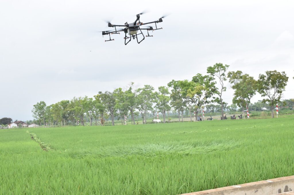 “Kegiatan ini kita lakukan untuk percontohan penggunaan drone pertanian. Mudah-mudahan nanti ke depan menjadi budaya modern bagi petani kita, karena kinerja dari drone ini tentunya lebih menghemat waktu, bisa menghemat tenaga. Sehingga harapan kita pencegahan, penanggulangan, dan pemupukan tanaman padi dan yang lain itu bisa secara efektif,” terangnya.