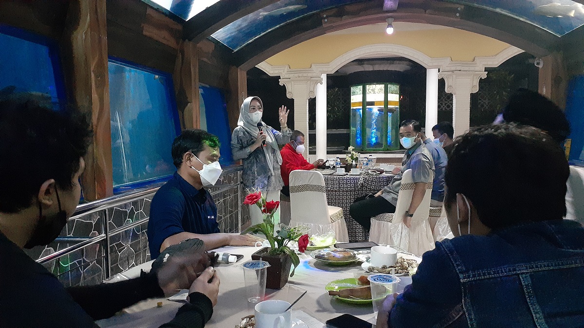 Sarasehan menghadirkan Bupati Tiwi bersama Ketua Dekranasda Rizal Diansyah, Kadinporapar, Kabid Pariwisata, Wartawan, Asbiling, TIC, HPI, PHRI Purbalingga dan Kayulingga.