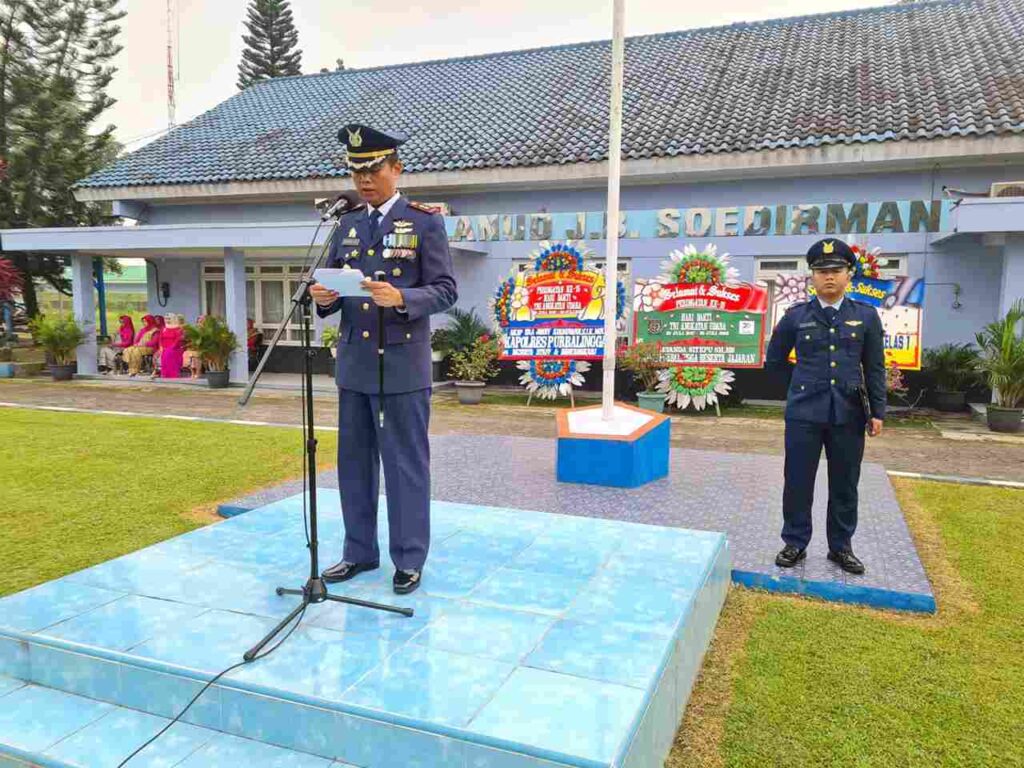 Hal ini disampaikan Kasau Marsekal TNI, Fadjar Prasetyo, S.E., M.P.P., CSFA., yang dibacakan Komandan Lanud JB Soedirman Letkol Nav Marino Adam Darmawan, ST., MM., saat upacara Peringatan ke-75 Hari Bakti TNI Angkatan Udara tahun 2022, bertempat di Lapangan Mako Lanud J.B. Soedirman yang diikuti seluruh anggota Lanud J.B. Soedirman, Jum’at (29/7/2022)