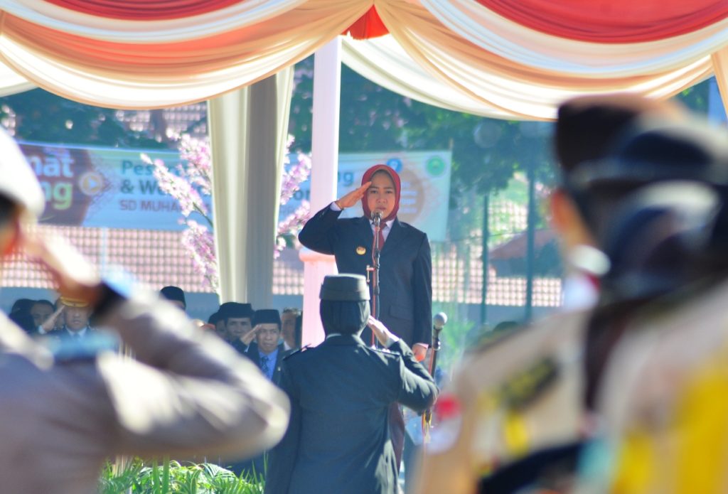 PURBALINGGA – Bupati Purbalingga Dyah Hayuning Pratiwi SE BEcon MM menyampaikan lima instruksi Presiden Republik Indonesia pada upacara peringatan hari Bhayangkara ke 73 Kepolisian Resor Purbalingga yang dipusatkan di alun-alun Purbalingga. Instruksi tersebut disampaikannya selaku inspektur upacara membacakan amanat Presiden Republik Indonesia pada Upacara Peringatan Ke-73 Hari Bhayangkara Tahun 2019, Rabu (10/7).