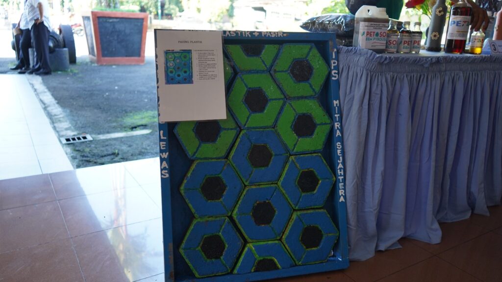 Tofik Hidayat, pengelolaan TPS Mitra Sejahtera Desa Karanglewas Kecamatan Kutasari mengatakan dengan 4 tenaga yang ada sampah rumah tangga yang dibuang di TPS kemudian dipilah serta diolah menjadi barang bernilai ekonomi. Salah satunya adalah diolah menjadi paving block dengan bahan baku sampah plastik seharga 6 ribu rupiah yang tidak akan pecah jika diinjak truk tronton.