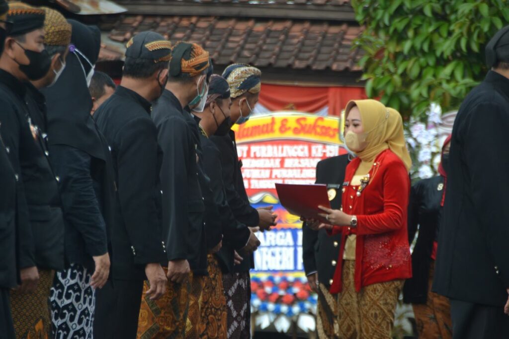 PURBALINGGA – Momen Hari Jadi ke 191 Kabupaten Purbalingga yang jatuh pada 18 Desember 2021, Bupati Dyah Hayuning Pratiwi SE BEcon MM memberikan penghargaan kepada masyarakat baik perorangan maupun kelompok yang dinilai berprestasi dan mengharumkan nama Kabupaten Purbalingga. Penghargaan diserahkan oleh Bupati, Wabup dan Wakil Ketua DPRD saat upacara memperingati Hari Jadi ke 191 Kabupaten Purbalingga, Sabtu (18/12) di halaman pendopo Dipokusumo.