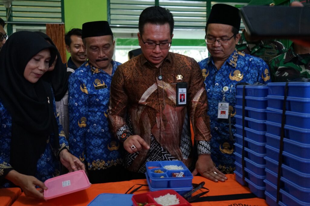 PURBALINGGA INFO – Bupati Purbalingga Dyah Hayuning Pratiwi (Tiwi) bersama jajaran Forum Koordinasi Pimpinan Daerah (Forkopimda) dan Ketua DPRD Purbalingga meninjau langsung pelaksanaan hari pertama program Makan Bergizi Gratis (MBG) di Kabupaten Purbalingga, Senin (17/2/2025). Monitoring dilakukan oleh tiga tim di tiga lokasi berbeda.