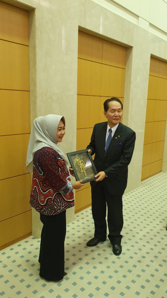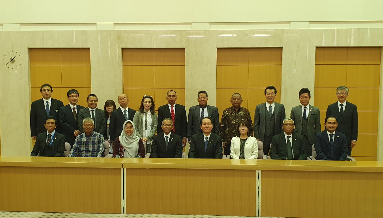 Pada kesempatan ini, Bupati Tiwi hadir ke Kagawa didampingi Asisten Ekonomi dan Pembangunan Sekda Drs Agus Winarno MSi dan Kepala Dinas Tenaga Kerja Ir Gunarto. Bupati memberikan cenderamata wayang suket kepada Gubernur Kagawa Perfectur Mr Hamada.(Gn/Humas)