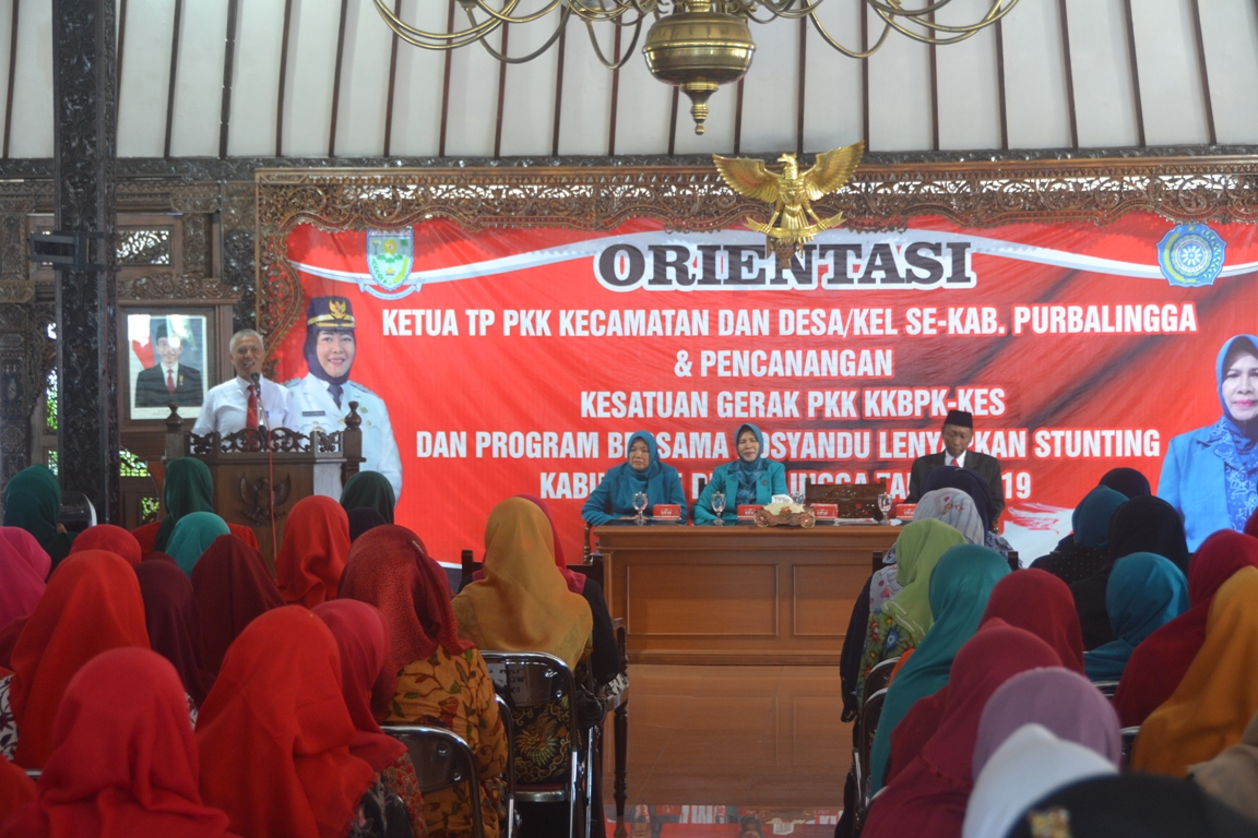 PURBALINGGA – Sebanyak 257 orang Ketua Tim Penggerak Pembinaan Kesejahteraan Keluarga (TP PKK) baik di tingkat kecamatan, desa/kelurahan se-Purbalingga mengikuti Orientasi Ketua TP PKK, Kamis (2/5) di Pendopo Dipokusumo. Selain itu juga dilakukan Pencanangan Kesatuan Gerak PKK Kependudukan Keluarga Berencana dan Pembangunan Keluarga (KKBPK)-KES Program Bersama Posyandu Lenyapkan Stunting.