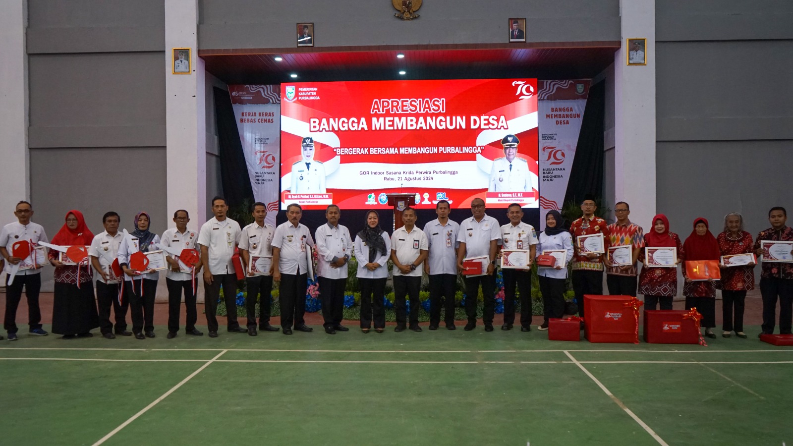 Hal tersebut diampaikan Kepala Dinpermasdes Purbalingga, Eni Sosiatman, saat acara penerimaan penghargaan “Apresiasi Bangga Membangun Desa” di GOR Indoor Sasana Krida Perwira Kabupaten Purbalingga, Rabu (21/8/24).
