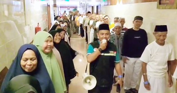 “Kami tugasnya visitasi rutin ke kamar jamaah lansia karena beberapa kali ditemukan demensia atau disorientasi atau kebingungan, sehingga terus kita berikan pengertian,” ujarnya.