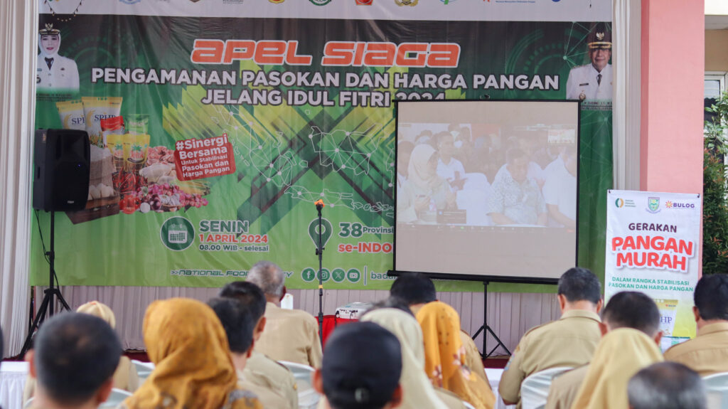 Gerakan tersebut digongi dengan gelaran Apel Siaga Pengamanan Pasokan dan Harga Pangan Jelang Idulfitri 2024 oleh Badan Pangan Nasional secara daring serentak di 514 Kabupaten/kota di Indonesia.