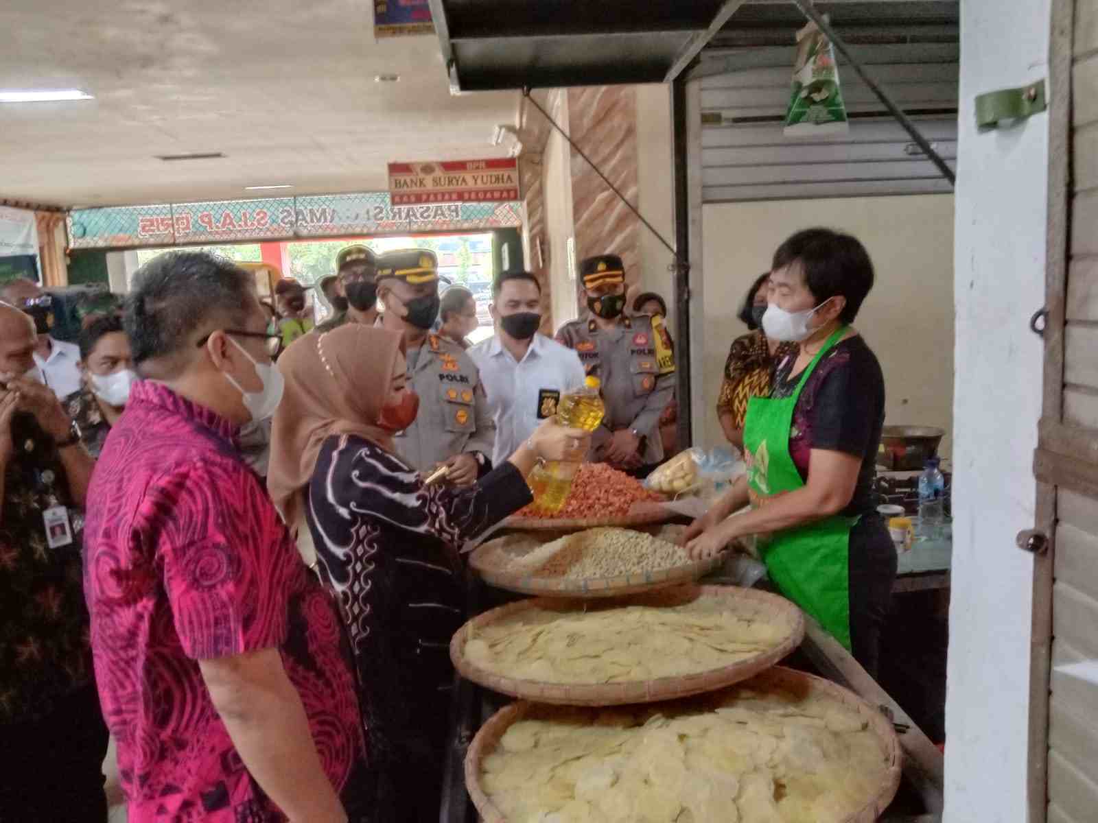 PURBALINGGA, INFO- Jelang bulan suci Ramadhan, stok kebutuhan bangan pangan aman sehingga masyarakat tidak perlu khawatir. Hal tersebut disampaikan Bupati Purbalingga Dyah Hayuning Pratiwi saat melakukan monitoring stok pangan dan harga di Pasar Segamas dan gudang distributor minyak goreng Bumi Artha, Kamis (31/3/2022).