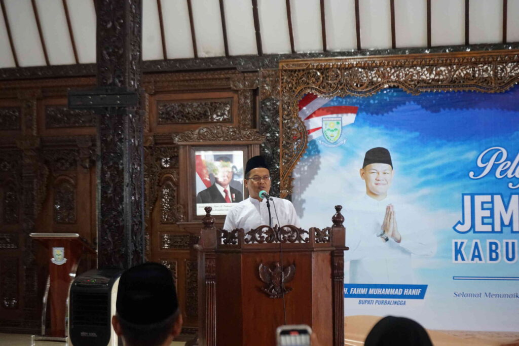 PURBALINGGA – Sebanyak 382 jemaah calon haji (calhaj) Kabupaten Purbalingga yang terdiri dari 353 jemaah kloter 1 dan 29 jemaah kloter 2 bersama dengan jemaah calhaj Kabupaten Banjarnegara bertemu dengan Bupati Purbalingga, H. Fahmi Muhammad Hanif, Sabtu (26/4/2025) di Pendopo Dipokusumo. Bupati Fahmi mengatakan, rencananya jemaah calhaj kloter 1 akan dilepas oleh Gubernur Jawa Tengah di Donohudan Kabupaten Boyolali pada Jumat (2/5/2025) dini hari.