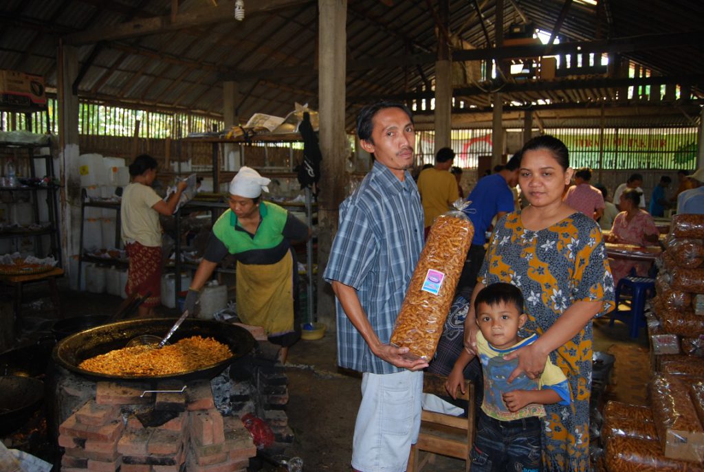 Meskipun pada awalnya gosong, mantan perajin tempe ini bersama Hiyarti dengan telaten membuat adonan, mengiris, menggulung dan menggoreng sampai mengemas kecil-kecil.