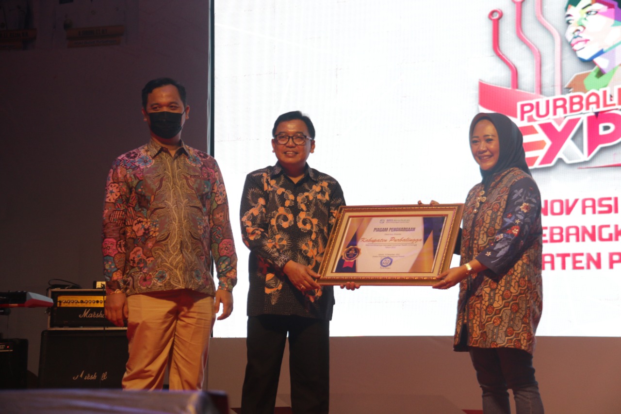 Asisten Deputi Bidang Perencanaan Iuran dan Keuangan Kedeputian Wilayah Jawa Tengah dan DIY, Markus Susilo menyerahkan langsung Piagam UHC kepada Bupati Purbalingga, Dyah Hayuning Pratiwi saat acara pembukaan Purbalingga Expo, Kamis (15/12/22). Penyerahan disaksikan oleh jajaran Organisasi Perangkat Daerah (OPD) Kabupaten Purbalingga dan masyarakat yang menghadiri pembukaan Purbalingga Expo.