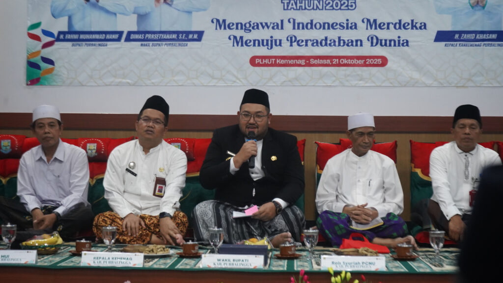 PURBALINGGA – Dalam rangka memperingati Hari Santri Nasional (HSN) Tahun 2025, Kantor Kementerian Agama (Kemenag) Kabupaten Purbalingga menggelar kegiatan Ngaji Bandongan, Selasa (21/10/2025), bertempat di Aula Pusat Layanan Haji dan Umrah Terpadu (PLHUT) Kemenag Purbalingga. Tahun ini HSN mengusung tema “Mengawal Indonesia Merdeka Menuju Peradaban Dunia.”