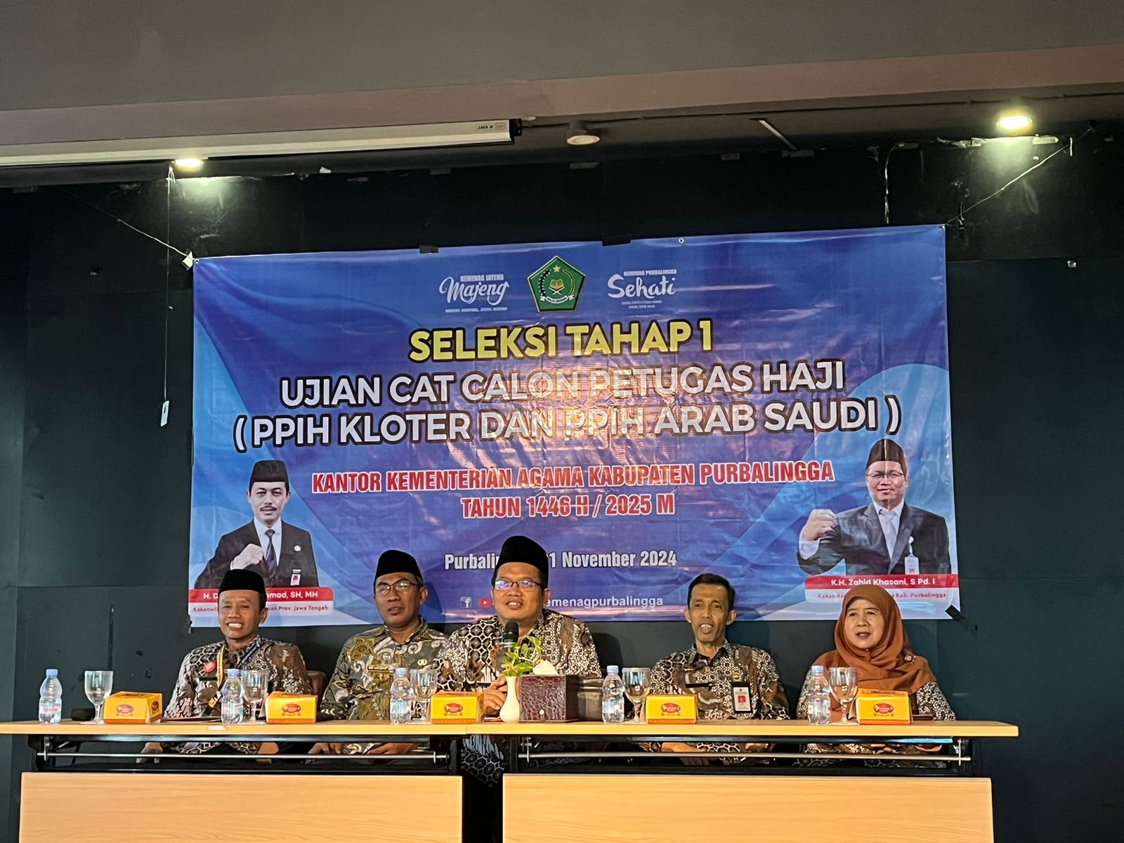 PURBALINGGA, INFO – Kantor Kementerian Agama (Kankemenag) Kabupaten Purbalingga tengah mempersiapkan calon petugas haji PPIH Kloter dan PPIH Arab Saudi tahun 1446 H/ 2025. Tahapan seleksi pertama yakni CAT diadakan di Hotel Grand Braling Purbalingga, Kamis (21/11/2024) yang diikuti oleh 41 peserta dari 42 peserta yang lolos seleksi administrasi.
