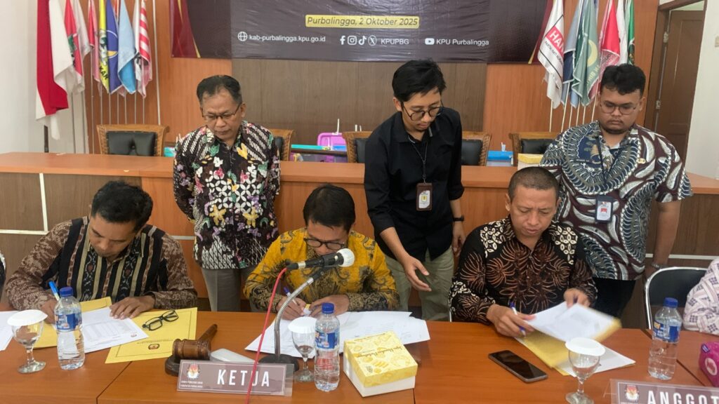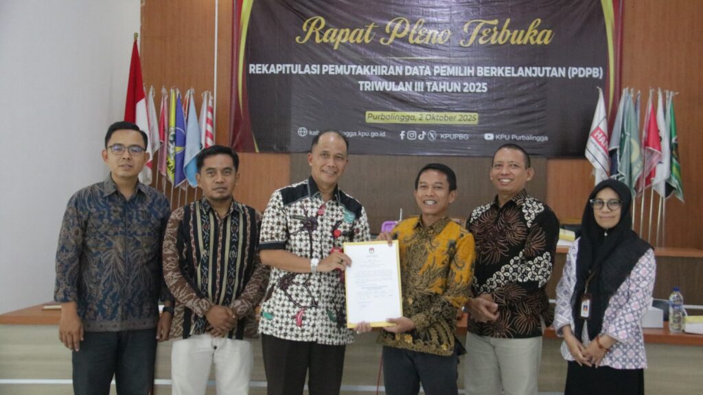 PURBALINGGA INFO– Komisi Pemilihan Umum (KPU) Kabupaten Purbalingga menggelar Rapat Pleno Terbuka Rekapitulasi Pemutakhiran Data Pemilih Berkelanjutan (PDPB) Triwulan III Tahun 2025 di Aula Kantor KPU Purbalingga, Kamis (2/10/25).