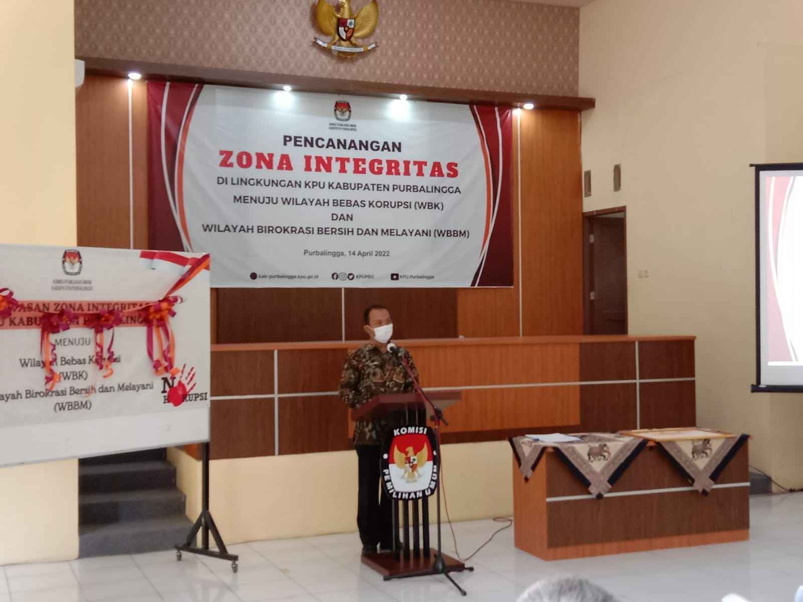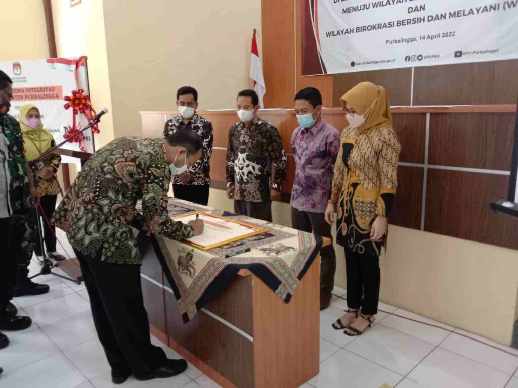 PURBALINGGA, INFO- Komisi Pemilihan Umum (KPU) Purbalingga meminta kepada calon peserta pemilu yaitu Partai Politik (Parpol) yang akan bertarung di 2024 mendatang segera mempersiapkan diri. Hal tersebut disampaikan Ketua KPU Purbalingga, Eko Setiawan saat menyampaikan sambutan pada acara Pencanangan Zona Integritas di lingkungan KPU Purbalingga, Kamis (14/4/2022).