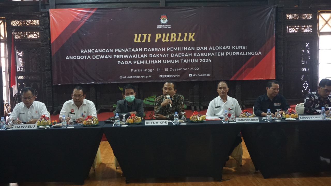 Ketua KPU Purbalingga, Eko Setiawan mengatakan uji publik penting dilaksanakan, untuk menghimpun masukan dan tanggapan dari para pemangku kepentingan. Uji publik dihadiri Pejabat Forkopimda, kepala OPD, Camat, pengurus partai politik, organisasi masyarakat, organisasi kepemudaan, dan sejumlah perwakilan masyarakat.