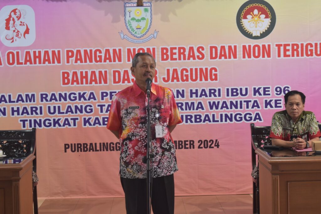 PURBALINGGA INFO – Dinas Sosial Pengendalian Penduduk dan Keluarga Berencana, Pemberdayaan Perempuan, dan Perlindungan Anak (Dinsosdalduk KBP3A) Purbalingga bersama Dharma Wanita Persatuan (DWP) Purbalingga menggelar Lomba Olahan Pangan Non-Beras dan Non-Terigu berbahan dasar jagung, Kamis (12/12/24). Acara yang dilaksanakan di Pendopo Dipokusumo Purbalingga tersebut dalam rangka memperingati Hari Ibu ke-96 dan Hari Ulang Tahun Dharma Wanita Persatuan (DWP) ke-25 tingkat Kabupaten Purbalingga