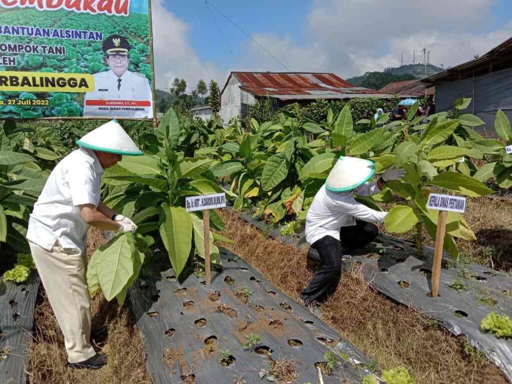 PURBALINGGA INFO- Kabupaten Purbalingga memang bukan produsen mayor tembakau yang memainkan peran di pasar, akan tetapi hal tersebut bukan berarti Kabupaten Purbalingga tidak memiliki kebun tembakau. Hal tersebut disampaikan Kepala Balai Penyuluh Pertanian Karangreja, Dinpertan Purbalingga Sujarwo saat ditemui di sela-sela acara panen tembakau dan penyerahan bantuan Alsintan Kepada Kelompok Tani oleh Bupati yang diwakili Asisten Ekonomi dan Pembangunan Sekda Purbalingga Agus Winarno yang juga dihadiri anggota DPR RI Darori Wonodipuro, Rabu (27/7/2022).