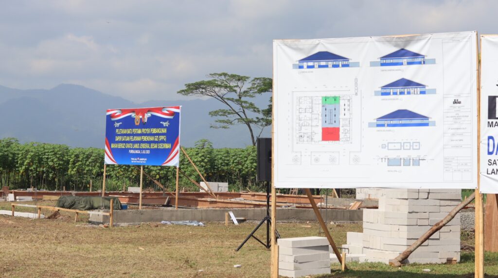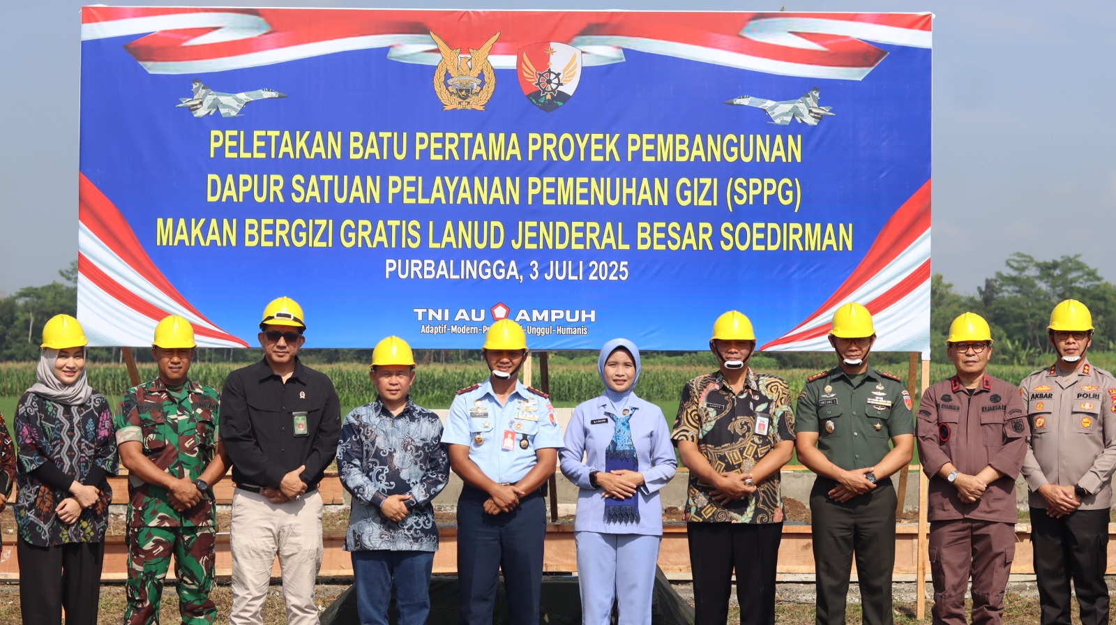Peletakan batu pertama pembangunan dapur SPPG dilakukan secara simbolis oleh Komandan Lanud J.B. Soedirman, Letkol Pnb Tatag Onne Setiawan, S.I.P., M.Han., bersama Asisten Pemerintahan dan Kesra Sekda Purbalingga, Suroto, yang mewakili Bupati Purbalingga, jajaran Forkopimda, dan Forkopimcam.