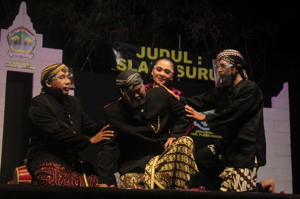 PURBALINGGA, INFO – Forum Komunikasi Media Tradisional (FK Metra) Kabupaten Purbalingga kembali mengikuti festival pertunjukan rakyat (Pertunra) 2022 tingkat Jawa Tengah secara online. Kegiatan bertujuan untuk melestarikan budaya lokal terutama bagi para pemuda. Pementasan yang digelar di Panggung Kesenian Mahesa Jenar Purbalingga, Kamis (23/6) malam tersebut melibatkan 15 pemain yang mayoritas pemuda usia 18 hingga 23 tahun.