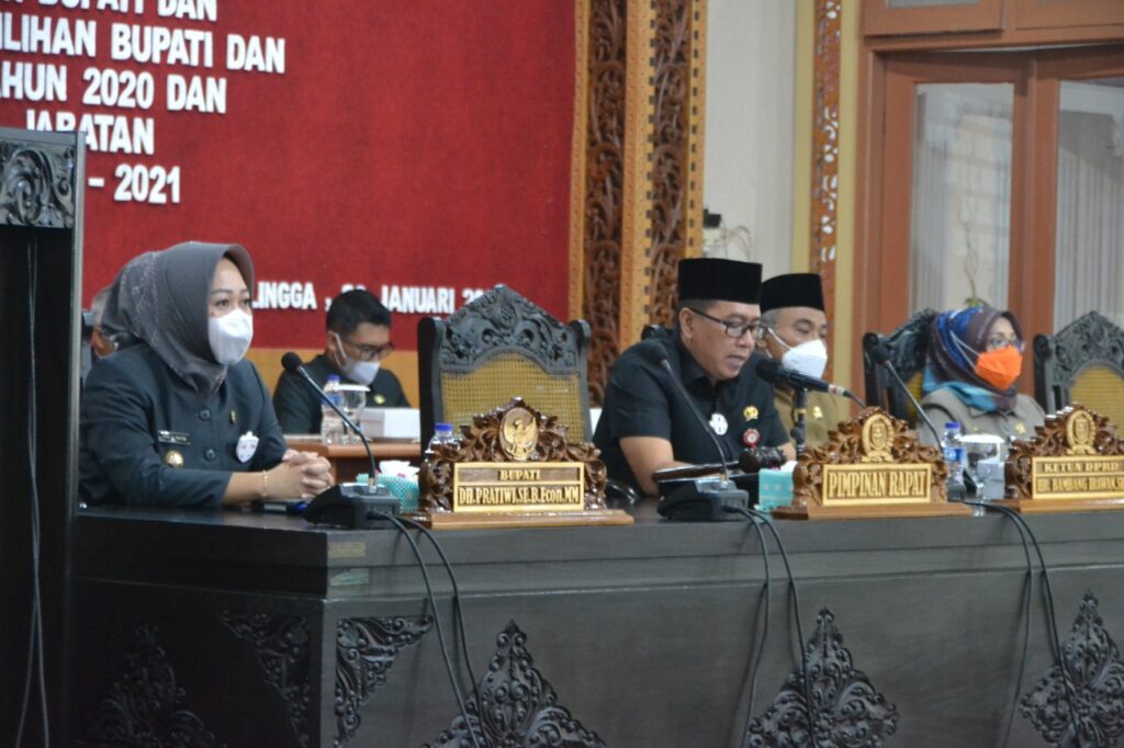 Bupati Purbalingga Dyah Hayuning Pratiwi SE BEcon MM mengucapkan rasa syukur atas segala proses Pilkada 2020 yang telah berlangsung lancar. Ia mengucapkan terimakasih kepada penyelenggara Pemilu (KPU/Bawaslu), Forkopimda, Jajaran legislatif, dan masyarakat Purbalingga yang telah turut mensukseskan dan berpartisipasi. Sementara itu, hasil rapat paripurna DPRD kali ini akan diusulkan kepada Mendagri melalui Gubernur Jawa Tengah.