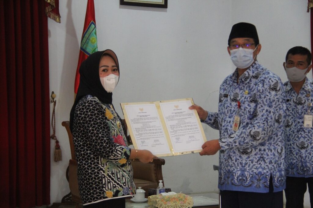 Penandatanganan Berita Acara Serah Terima Jabatan Bupati Purbalingga ditandantangani oleh Dyah Hayuning Pratiwi SE BEcon MM selaku pihak pertama atau yang menyerahkan jabatan dan oleh Wahyu Kontardi SH selaku pihak kedua atau yang menerima, disaksikan Kapala Biro Pemerintahan, Otda dan Kerjasama Setda Propinsi Jateng Muhammad Masrofi, S.Sos., M.Si, secara virtual di Semarang.(umg_humaspurbalingga).